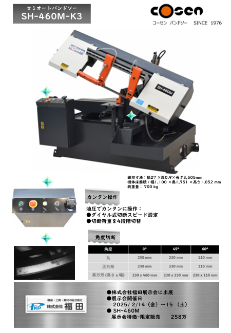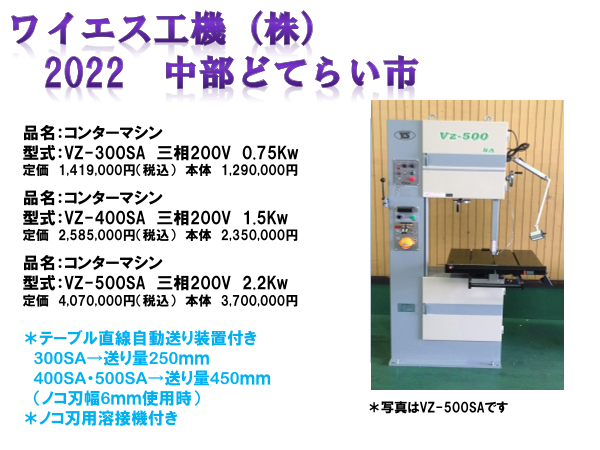 普及型強力帯ノコ盤 テーブル直線自動送り装置付きのコンターマシンです。VZ-300SA:テーブル寸法500㎜角・直線ストローク250㎜・奥行切断寸法300㎜・切断高さ200㎜VZ-400S...