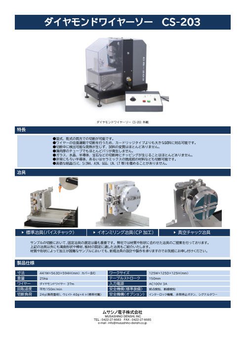 独自設計で最小断面ダメージと試料損失防止 標準付属の1軸ゴニオメーターでダイスカットも簡単に 簡単、便利、メンテナンスフリーなラボ用設計 様々なサンプルに対応...