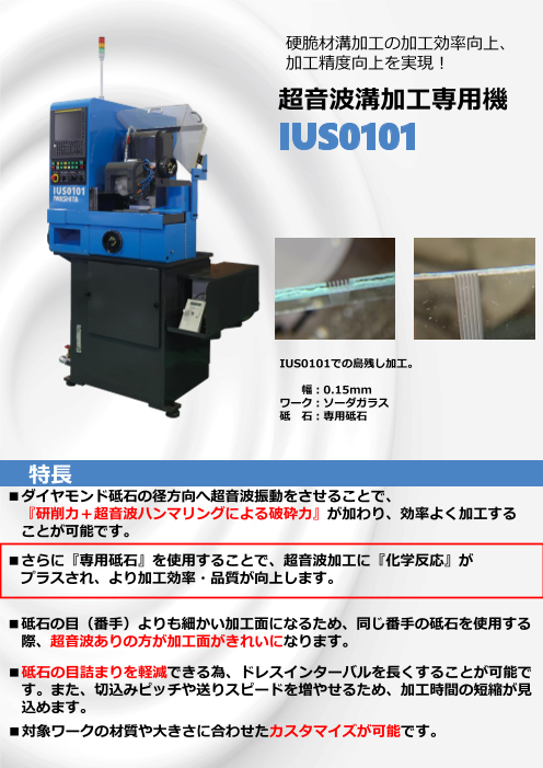 ◆ダイヤモンド砥石の径方向へ超音波振動をさせることで、『研削力+超音波ハンマリングによる破砕力 』 が加わり、効率よく加工することが可能です。◆さらに『 専用砥石 』 ...
