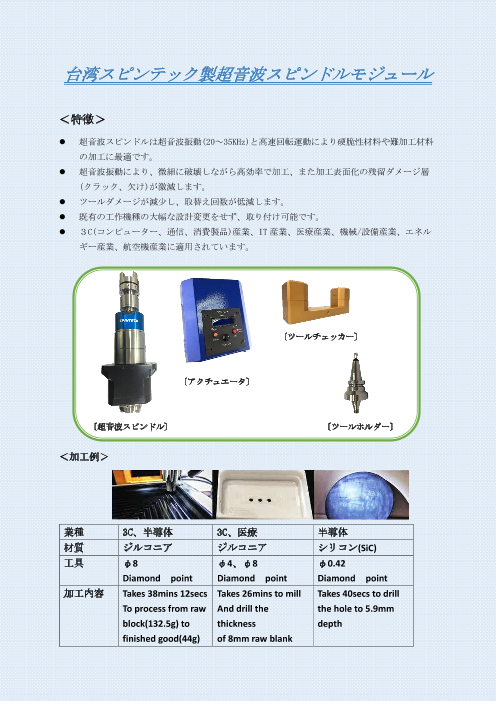 超音波スピンドルは、軸剛性が高くセラミックスや石英ガラスなどの脆性材料の小径深孔加工が高速で高品質な加工が可能となり半導体製造装置や液晶製造装置などの構成部品加工に...