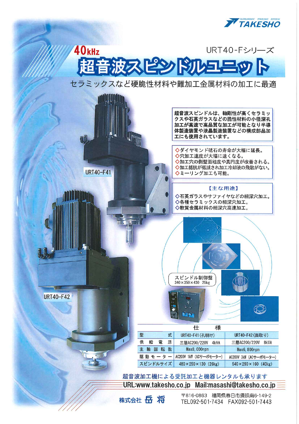超音波加工機の製造・ガラスやセラミックなどの超音波加工の株式会社岳将