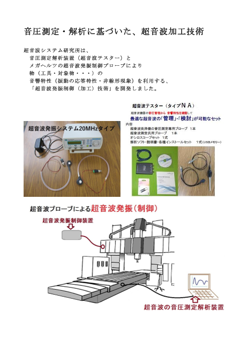 メガヘルツの超音波振動を利用した、機械加工データ超音波システム(音圧測定解析、発振制御)を利用した機械加工技術超音波システム研究所は、 音圧測定解析装置(超...
