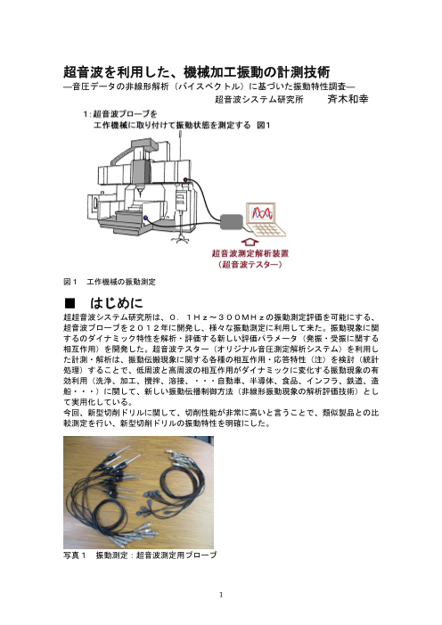 ■ はじめに 超超音波システム研究所は、0.1Hz~300MHzの振動測定評価を可能にする、超音波プローブを2012年に開発し...