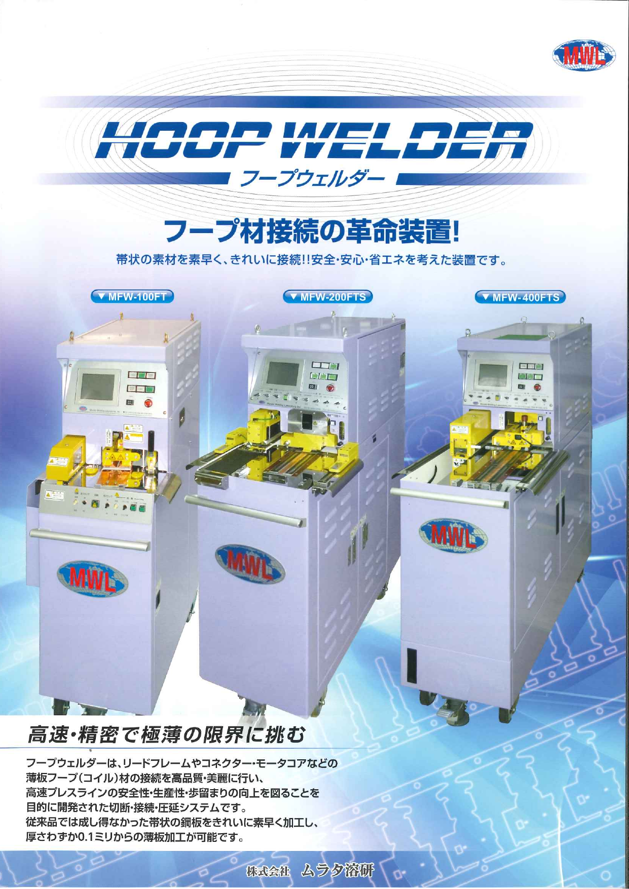 ・帯状の素材を素早く、きれいに接続!!・安全・安心・省エネを考えた装置です。・高速・精密で極薄の限界に挑む。・プレス現場革命!!・フープ材接続の悩み、全部解...
