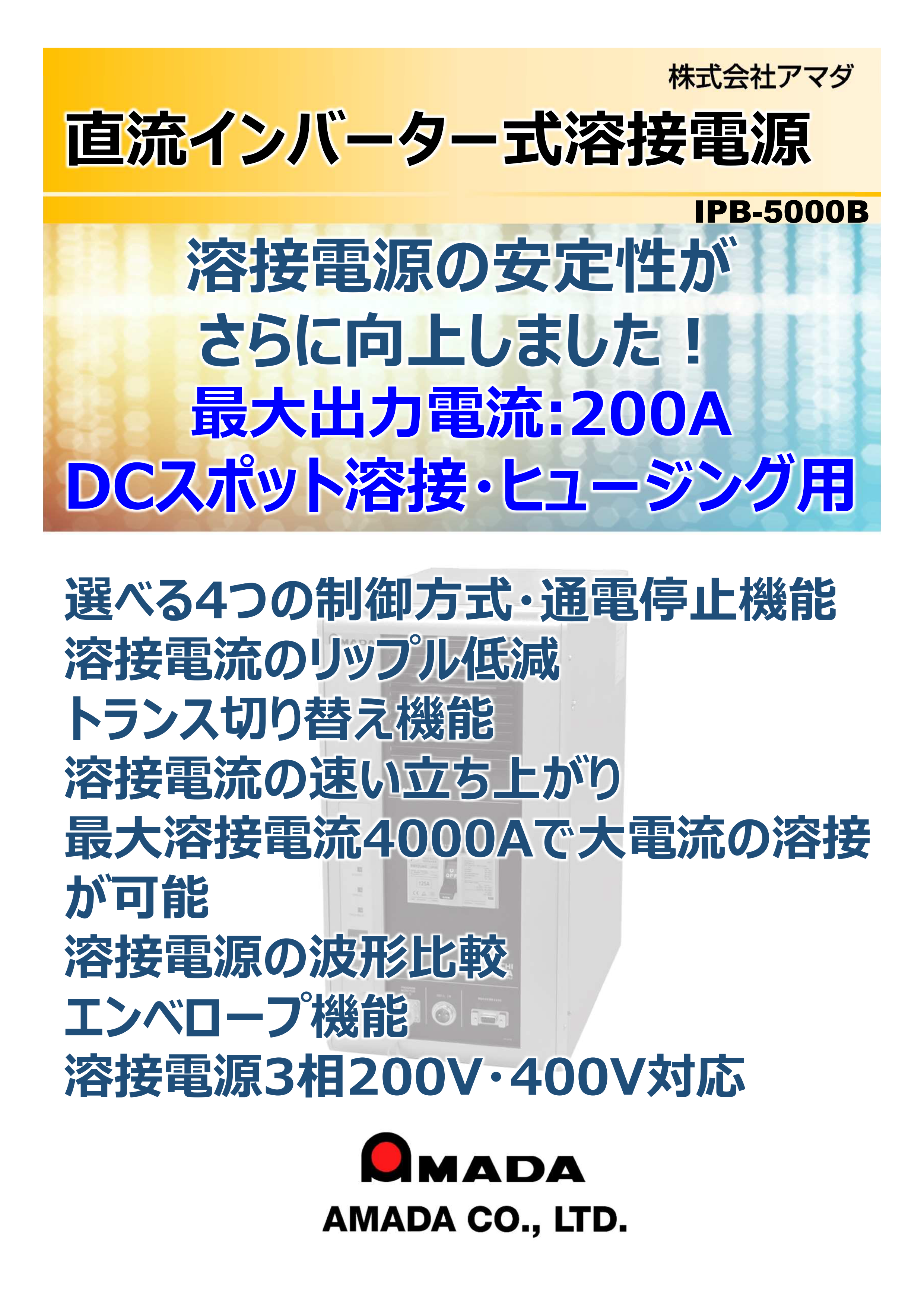 【特長】● 溶接電流の立ち上がりが早い溶接電流の立ち上がりが従来品* に比べ4.5倍の速さなので短時間で微細なワークも高品質な溶接が可能です。● 溶接トランスが不要...