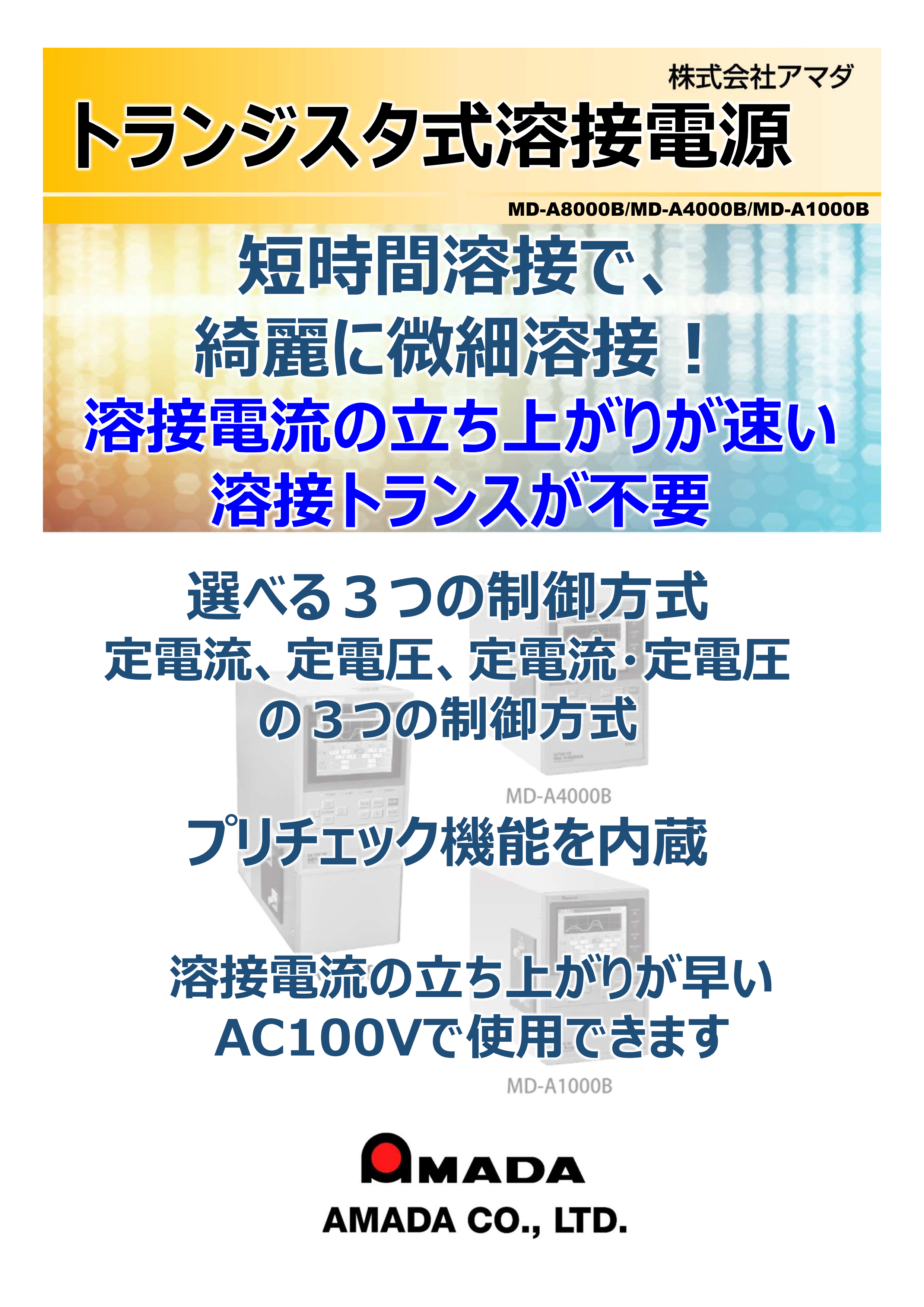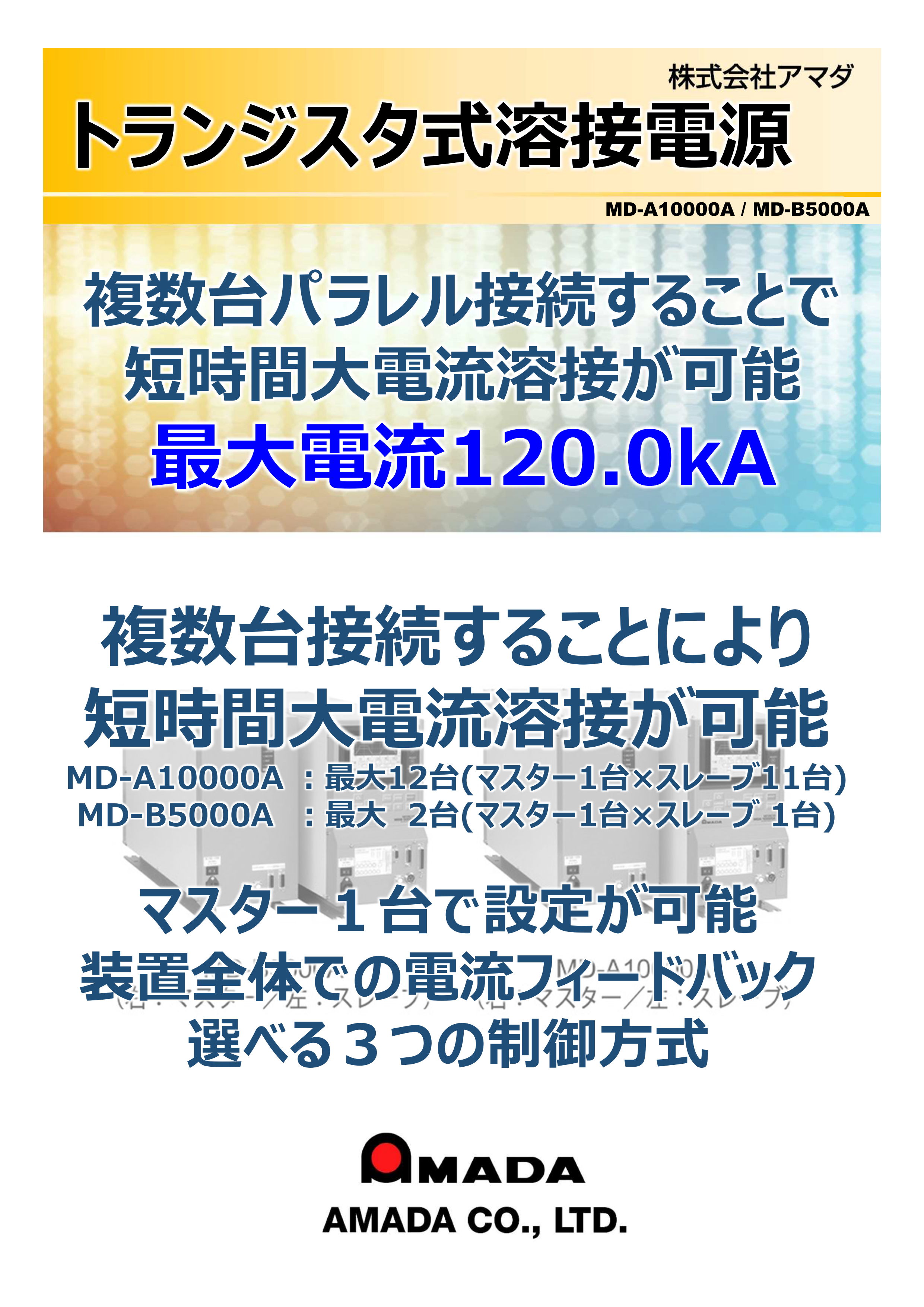 【特長】● 複数台接続することにより短時間大電流溶接が可能 MD-A10000は 最大12台、MD-A5000Bは2台接続ができます。 出力が固定されている電源と違い、電源をパラ接続...