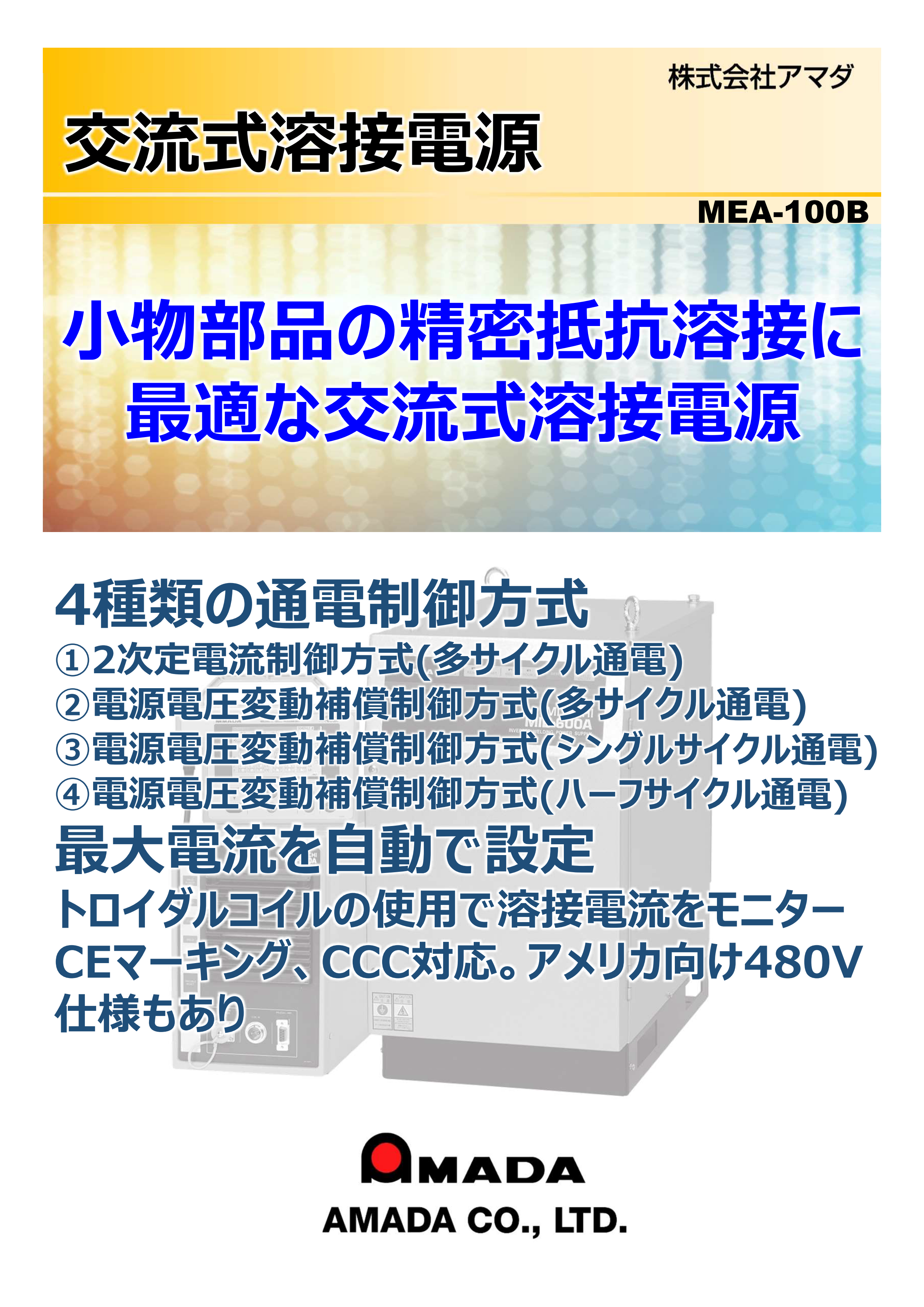 【特長】● 溶接電流の立ち上がりが早い溶接電流の立ち上がりが従来品に比べ4.5倍の速さなので短時間で微細なワークも高品質な溶接が可能です。● 溶接トランスが不要溶...