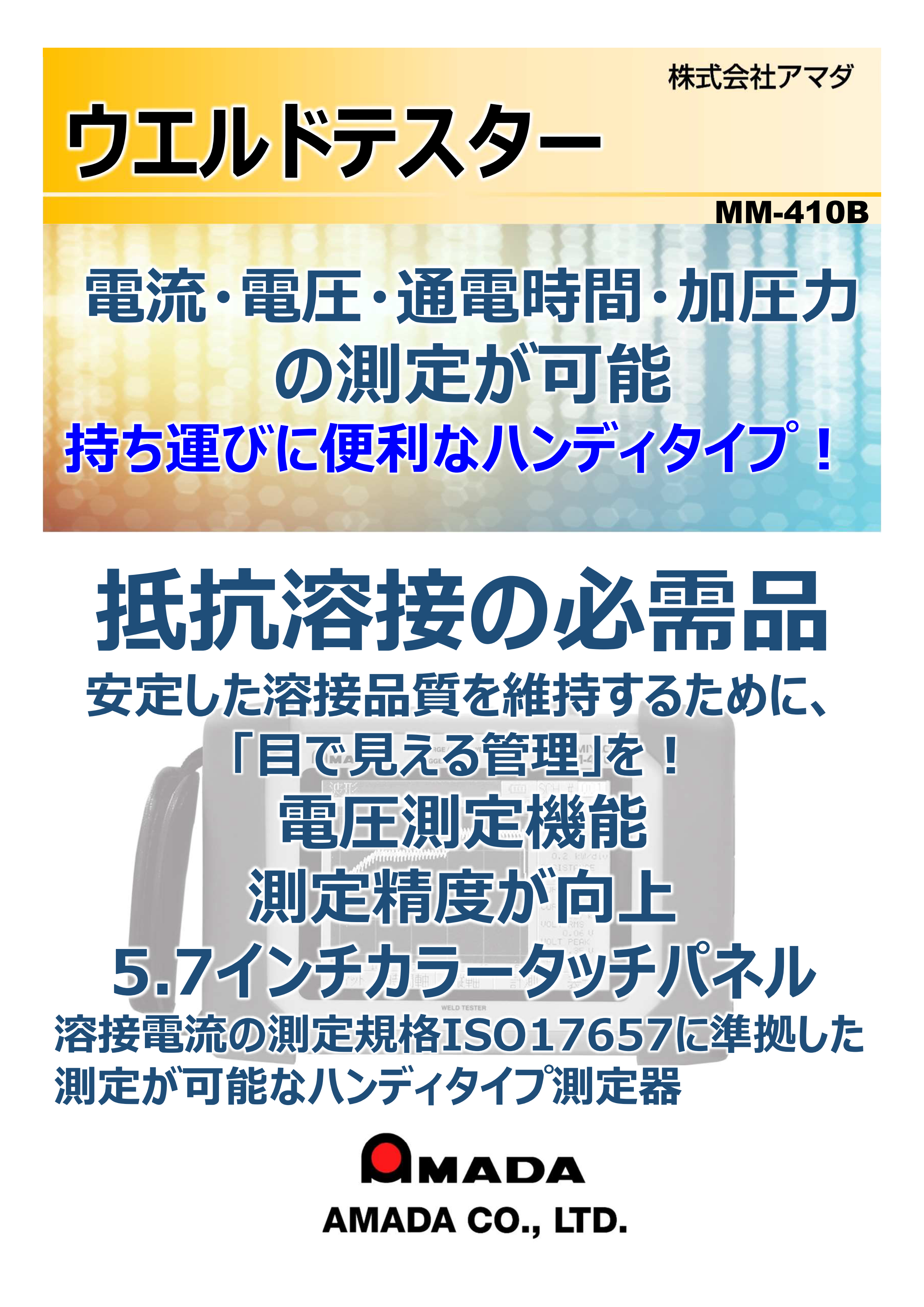 溶接電流の測定規格ISO17657 に準拠した測定が可能持ち運びに便利なハンディタイプ!さまざまな抵抗溶接機器と組合せてさらに高い接合品質管理を実現します。測定項目...