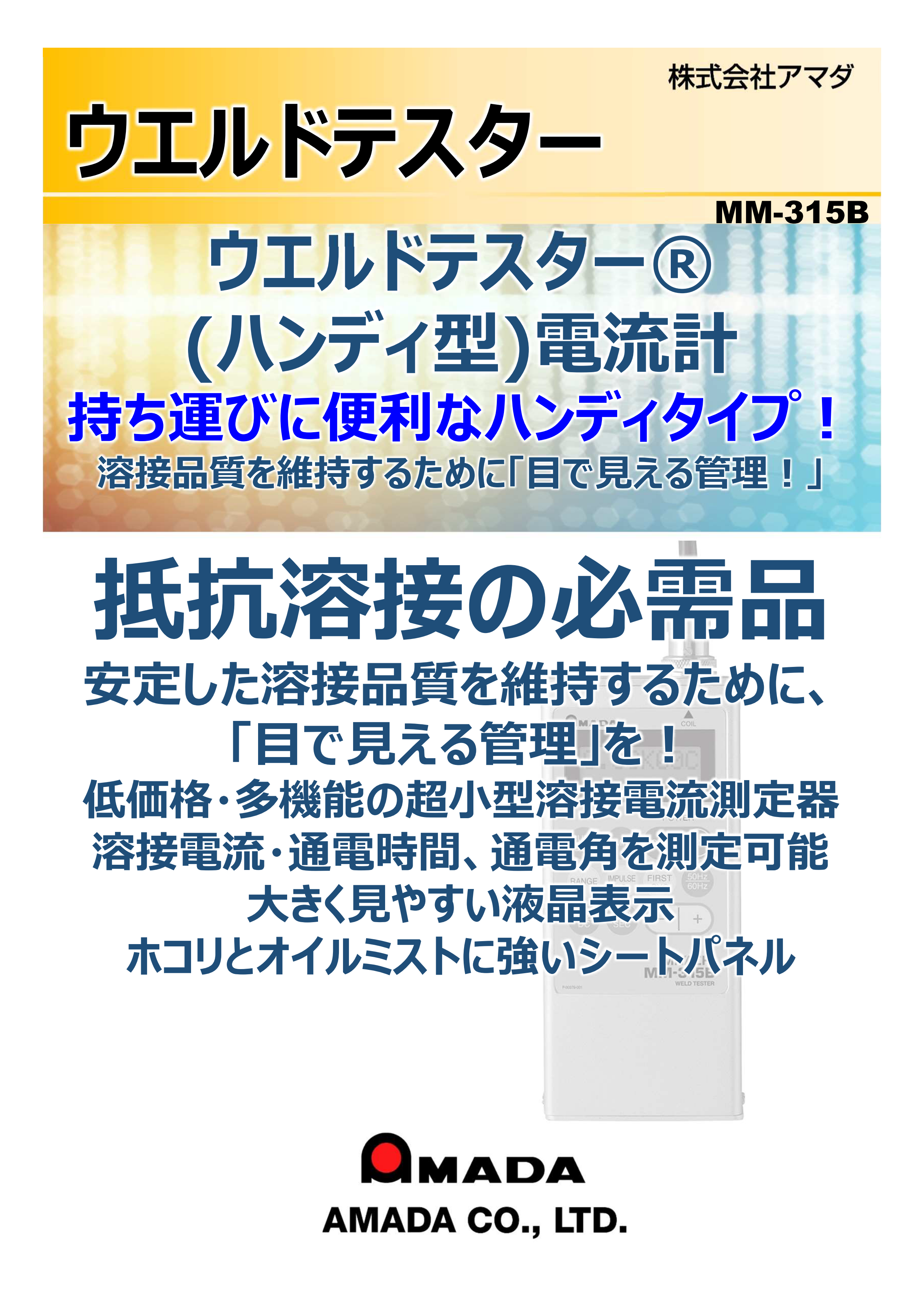【特長】ハンディで多機能低価格・多機能の超小型溶接電流測定器溶接電流・通電時間を測定通電角測定可能オートパワーオフ機能大きく見やすい液晶表示電池が切れ...