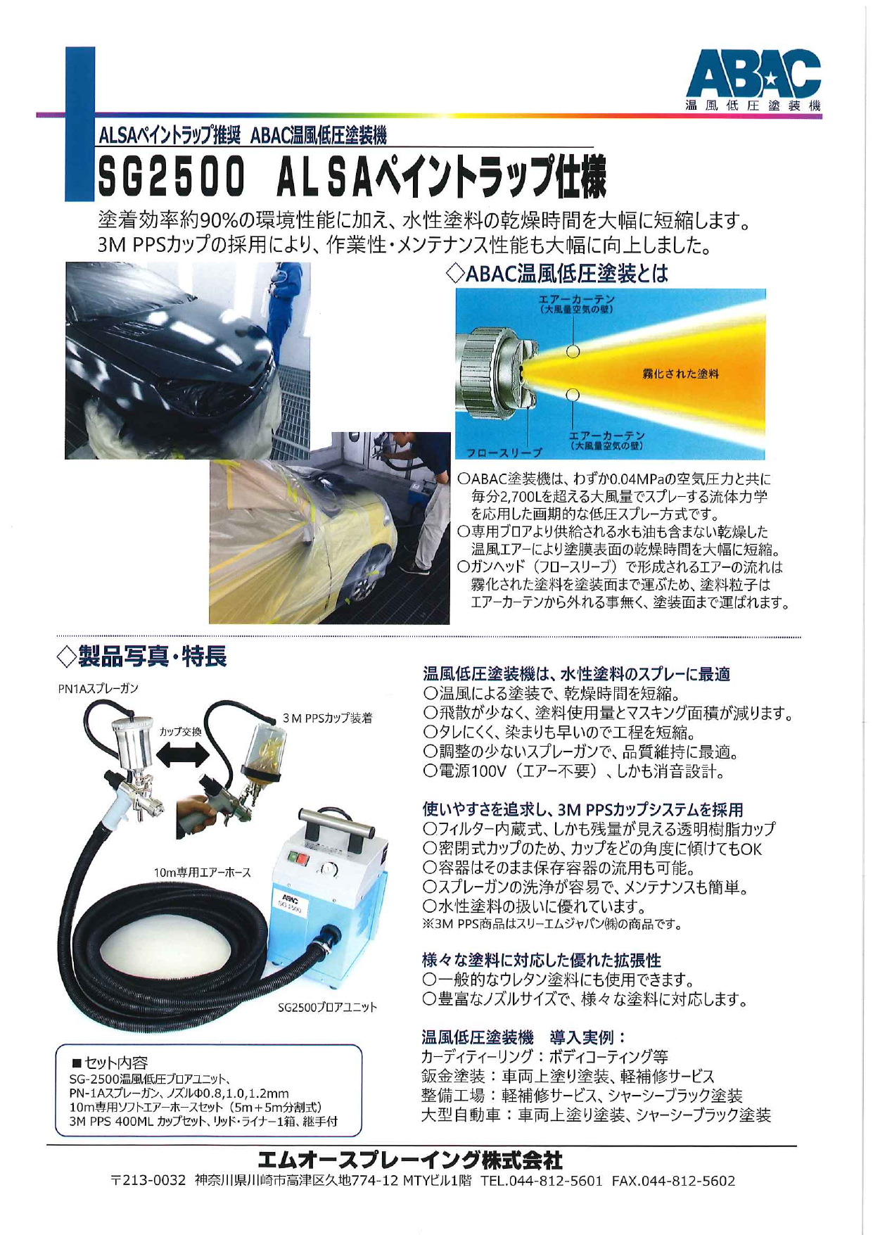 ABAC温風低圧塗装機 SG2500 ALSAペイントラップ仕様 カタログのご案内です。
