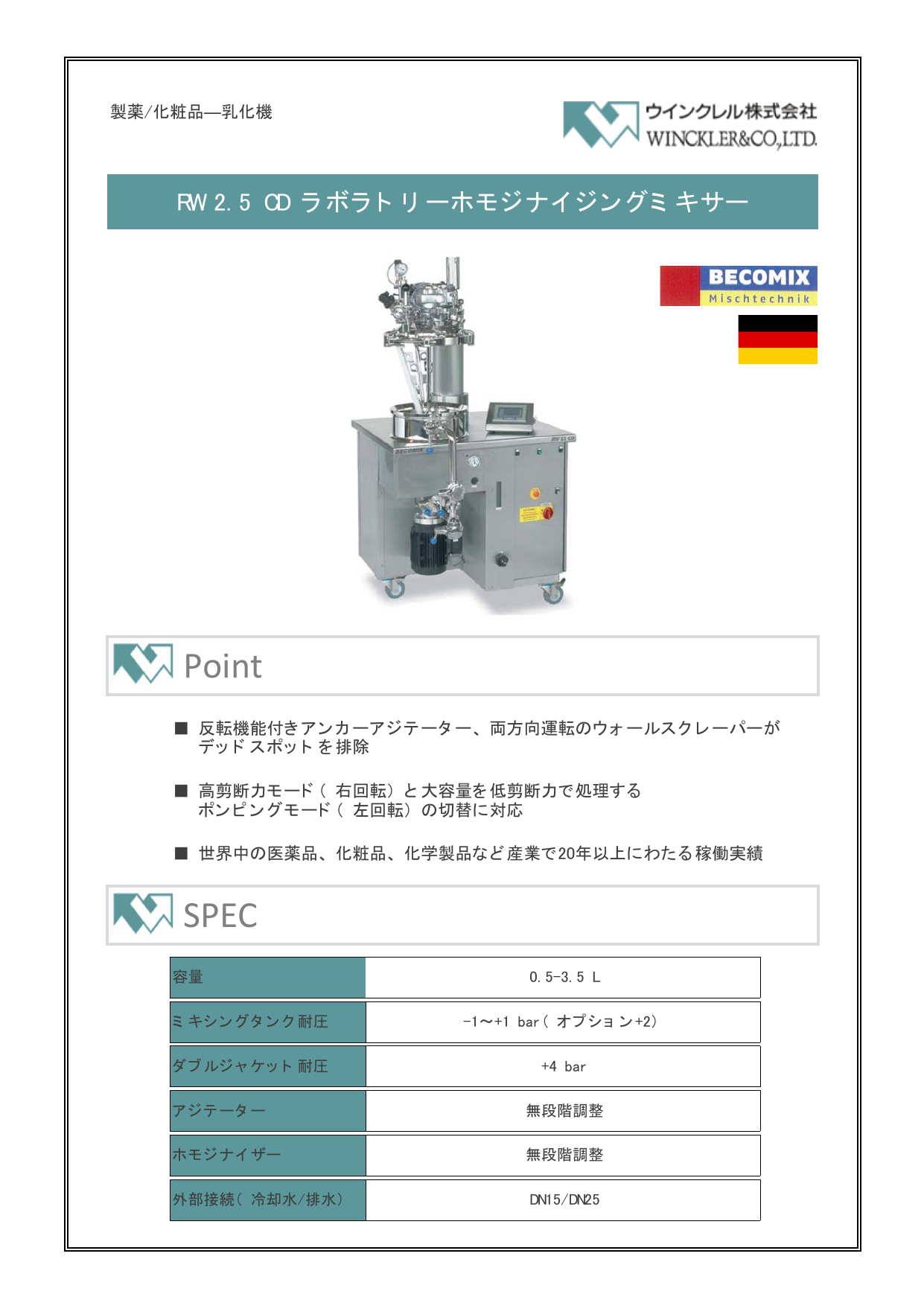 ホモゲナイザーとは、ピストンで送液を行う「プランジャー式高圧ポンプ」の出口に、「ネジ」または「油圧」でホモバルブの隙間を調節して均質を行う、最も一般的な均質機です。...