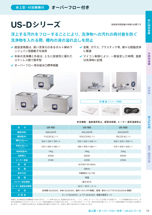 ◆外部機器からの信号で超音波洗浄のON/OFFが可能なリモートコネクター標準搭載◆安全機能:過電流保護、電子回路過昇温度保護◆詳細はカタログをダウンロードしご覧いただく...