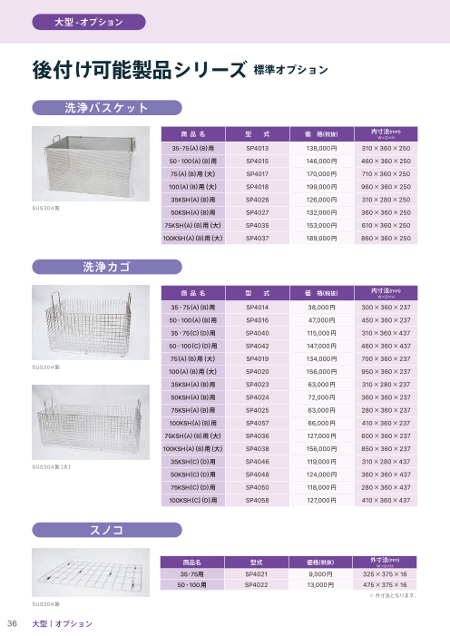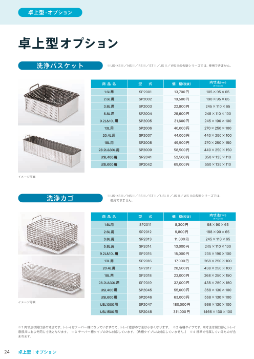 掲載製品◆後付け可能製品シリーズ・インサートトレイ・インサートトレイ用フタ・なべ式フタ・水切り台◆後付け不可能製品シリーズ(超音波洗浄機購入時オプション)・開閉式フタ・フッドスイッチ◆詳細はカタログをダウンロードしご覧いただくか、お...