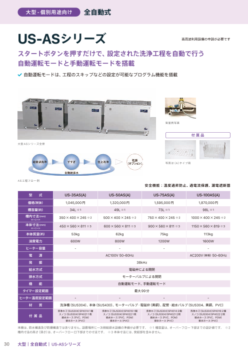 掲載内容・バブリング&シャワー洗浄付(全自動) ・揺動・昇降機構付(全自動)・ホイスト付・油分離装置付・循環ろ過式(卓上型)・縦型出力調整式(卓上型)...
