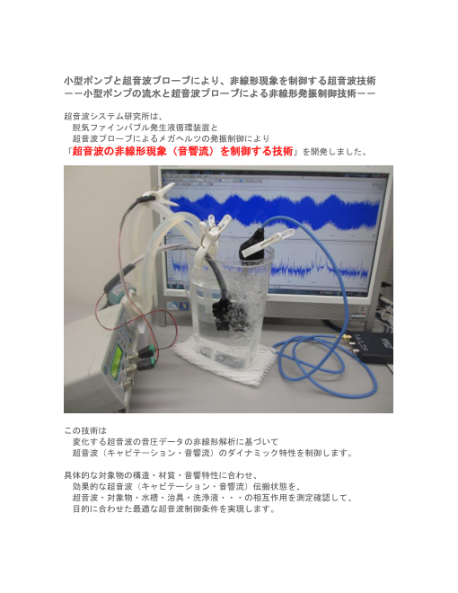 --小型ポンプの流水と超音波プローブによる非線形発振制御技術--