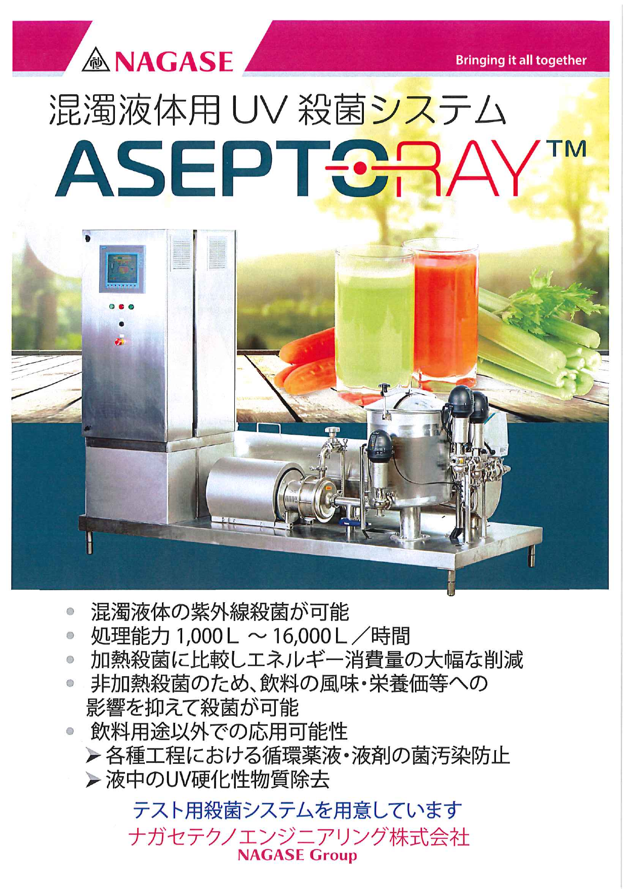 混濁液体用UV殺菌システム ASEPTORAY(TM) カタログのご案内です。