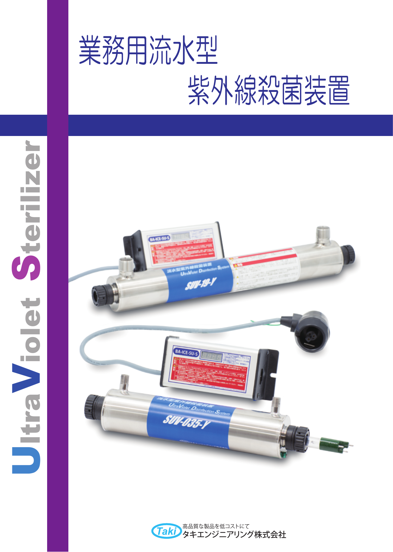 紫外線照度センサーなどのオプションがある流水型の紫外線殺菌装置です。