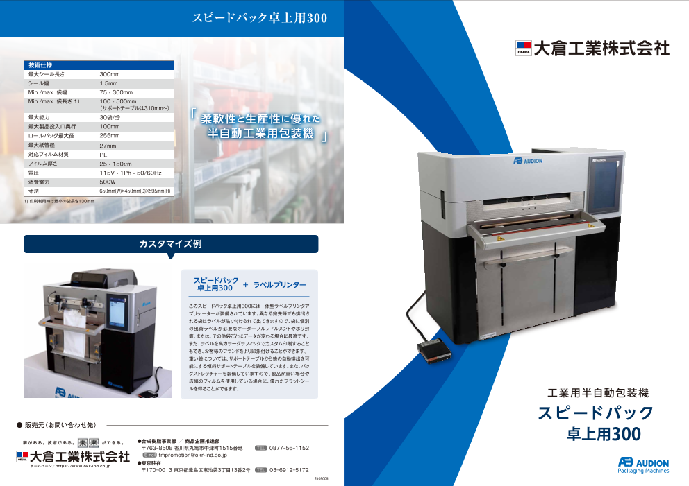 ・全電動システムにより圧縮空気が不要・小規模から中規模の包装作業に理想的な小型設計・ロック式回転テーブルおよびAutoThread機能により簡単な袋のアクセスおよび切替え...