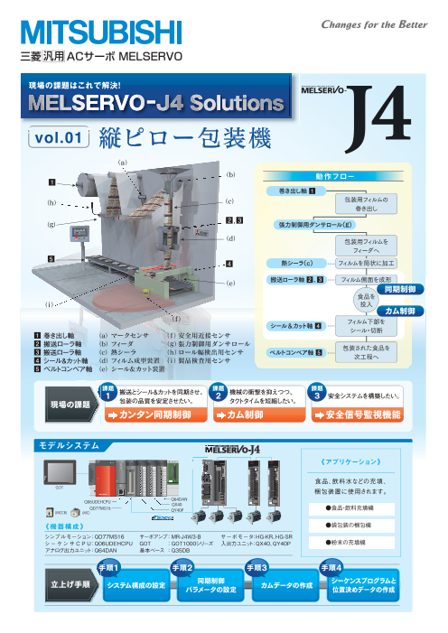 ◆搬送とシール&カットを同期させ、包装の品質を安定させたい。→カンタン同期制御◆機械の衝撃を抑えつつ、タクトタイムを短縮したい。→カム制御◆安全システムを構築した...