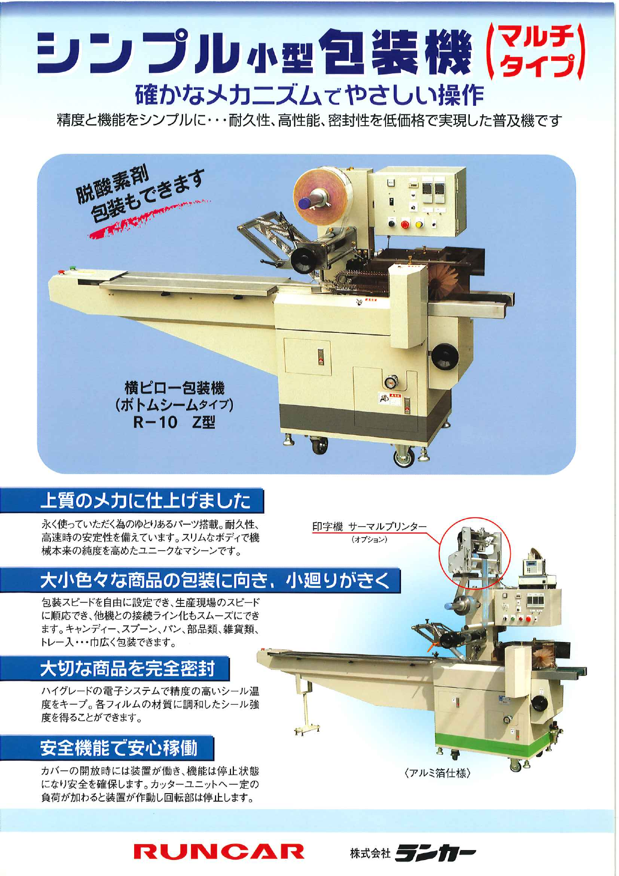 超小型のタテピロー包装機。機能満載・各装置連動対応。
