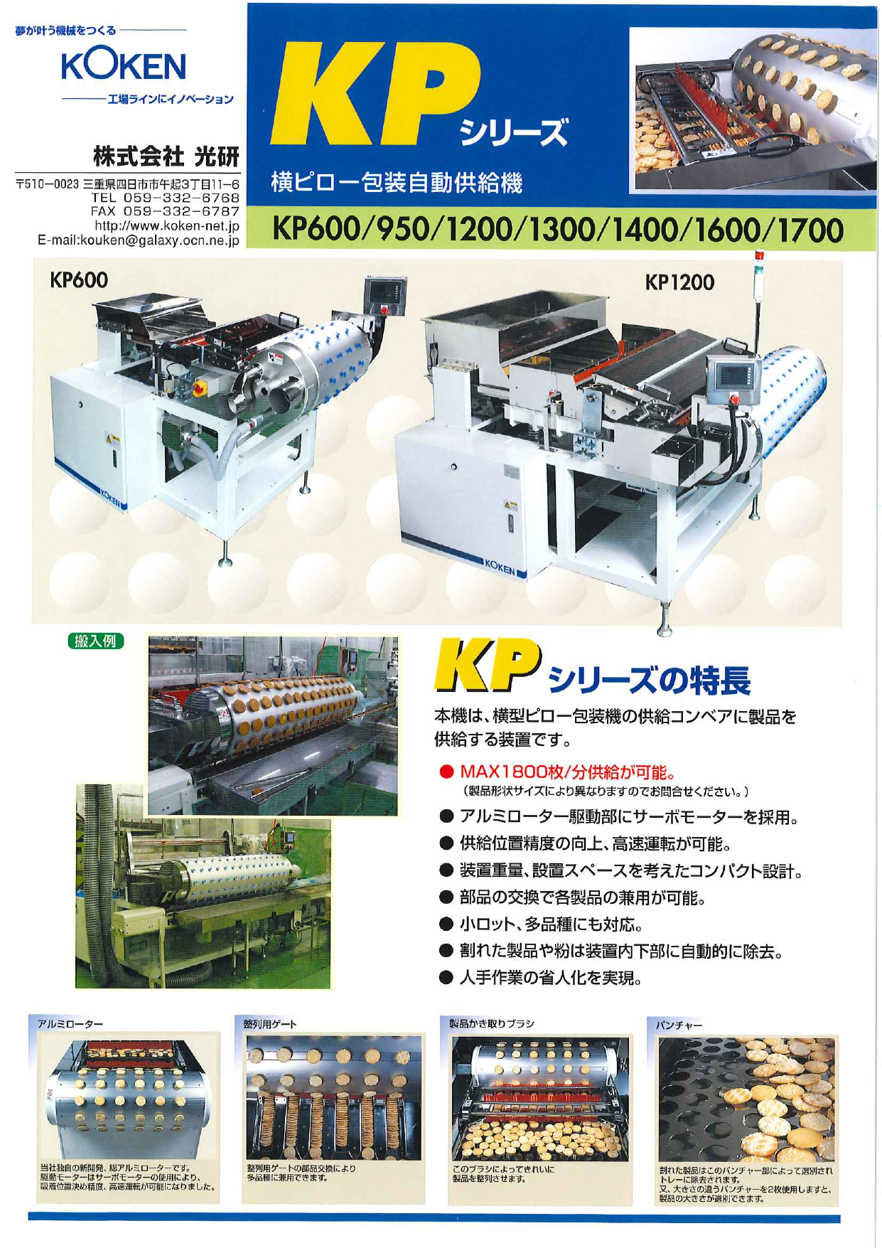 横ピロー包装自動供給機 KPシリーズ カタログのご案内です。
