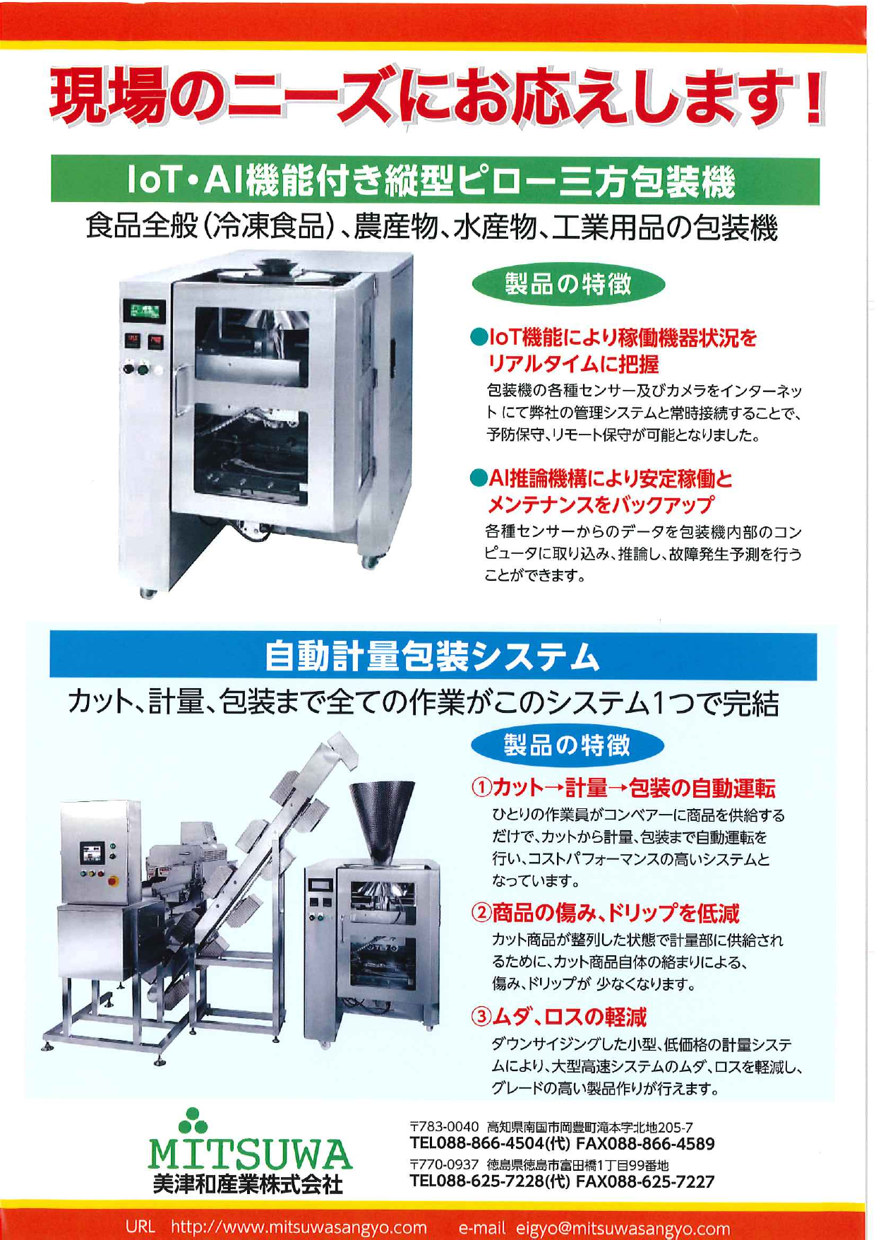 IoT・AI機能付き縦型ピロー三方包装機/自動計量包装システム カタログのご案内です。
