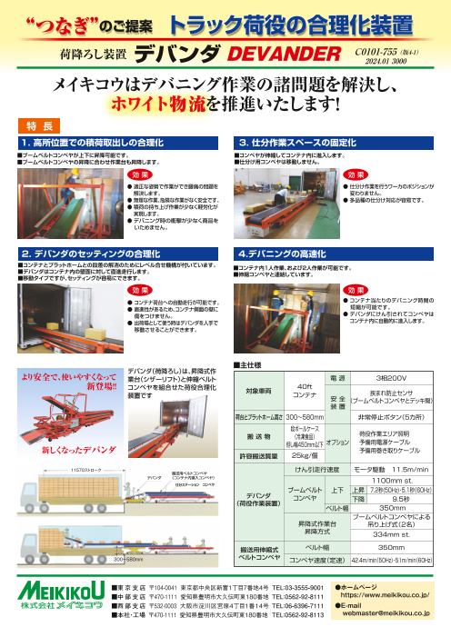 メイキコウはデバニング作業の諸問題を解決し、ホワイト物流を推進いたします!◼︎高所位置での積荷取出しの合理化◼︎デバンダのセッティングの合理化◼︎仕分作業スペース...