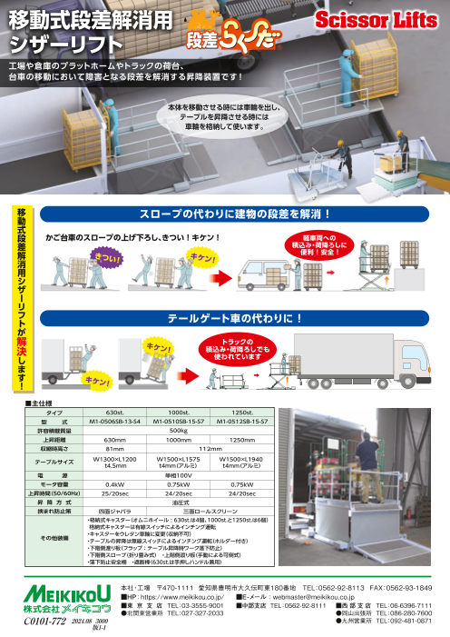 本体を移動させる時には車輪を出し、テーブルを昇降させる時には車輪を格納して使います。◆スロープの代わりに建物の段差を解消! 軽車両への積込み・荷降ろしに便利!安...