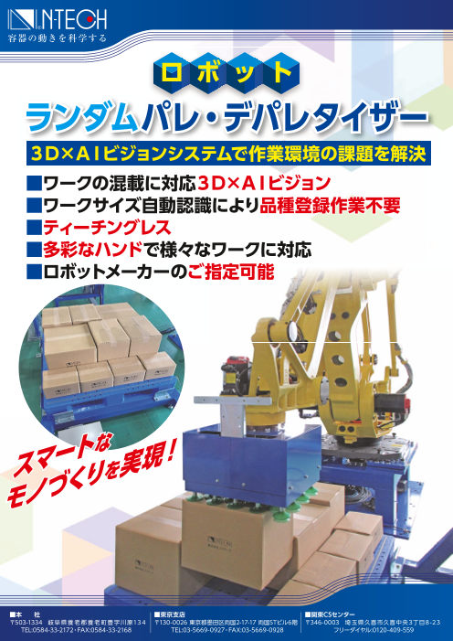 ・ワークの混載に対応3D×AIビジョン・ワークサイズ自動認識により品種登録作業不要・ティーチングレス・多彩なハンドで様々なワークに対応・ロボットメーカーのご指...