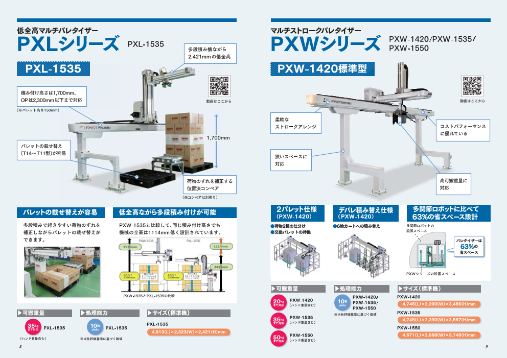 【 PXL-1535 製品特長 】 ■パレットの載せ替えが可能 ・多段積みで起きやすい荷物のずれを補正しながらパレットの載せ替え ・パレットの載せ替え T14~T11型に対応 ■低...
