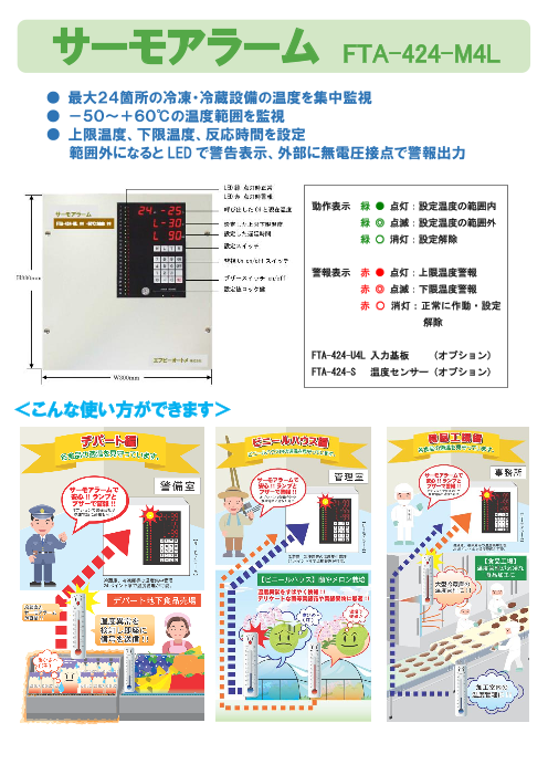 最大24ヵ所の温度を同時に測定し管理できる温度警報機です。各地点毎に上限下限の閾値を設定でき、それらを越えるか下回るかすると警報を鳴らします。-50℃~60℃の低音域の温...