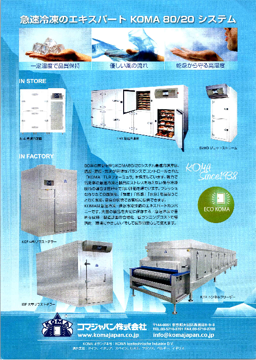 80年の歴史を持つKOMA80/20システム急速冷凍庫は、温度・湿度・気流が完璧なバランスでコントロールされた「KOMA TLRフォームミュラ」を採用しています。強力で高効率の急速冷...