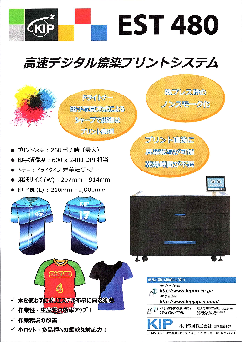 ・熱プレス時のノンスモーク化・プリント直後に昇華転写が可能、乾燥時間が不要・水を使わずにポリエステル布帛に高速染色・作業性・生産性の効率アップ!・作業環境の...