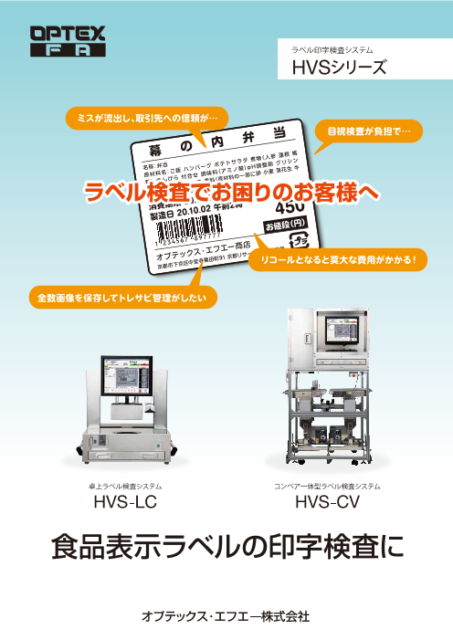 弁当や惣菜といった中食業界においては、多品種生産に伴う食品表示ラベルの誤添付・誤表示が増加しています。HVSシリーズでは食品表示ラベル内のすべての文字情報・バーコードマ...