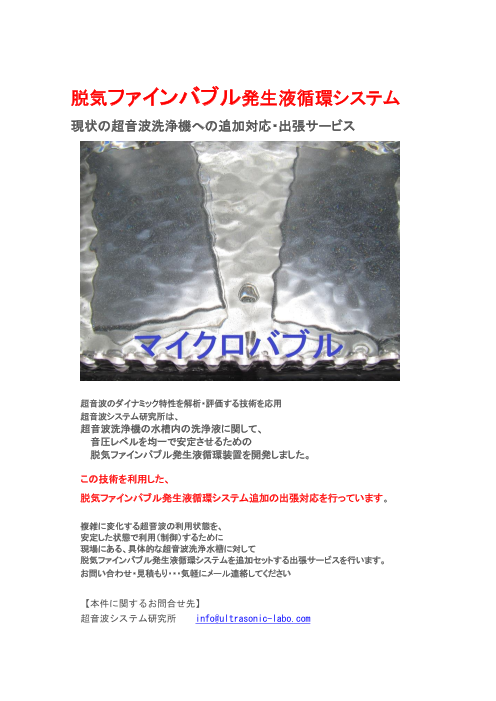 脱気ファインバブル発生液循環システム追加の出張対応を行っています。複雑に変化する超音波の利用状態を、 安定した状態で利用(制御)するために 現場にある、具体...