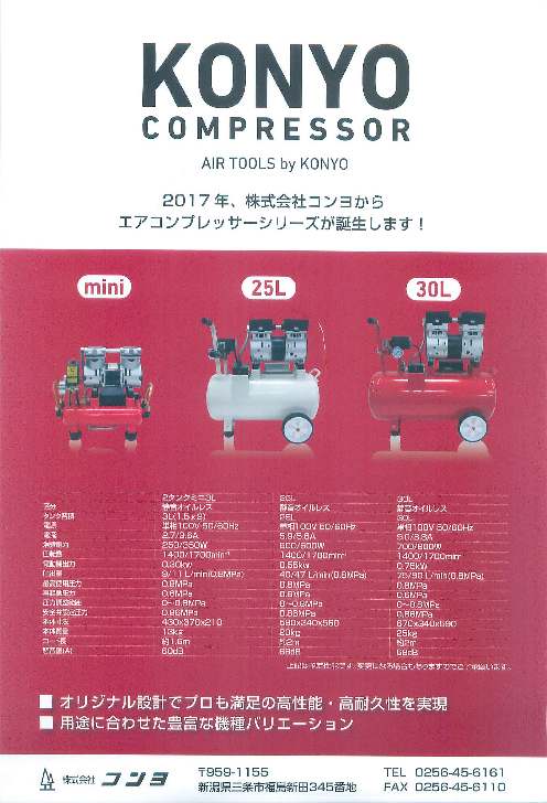 2017年、株式会社コンヨからエアコンプレッサーシリーズが誕生します!