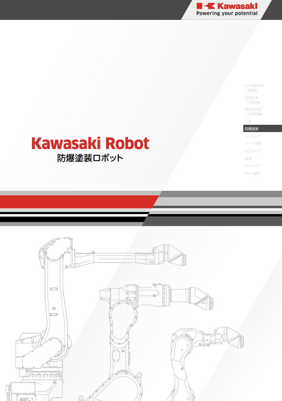 川崎重工の防爆仕様の塗装ロボット。小型品から大型品まで、様々な塗装物に対応する国内トップシェアの幅広いラインアップで塗装工程の自動化に貢献します。掲載内容◼...