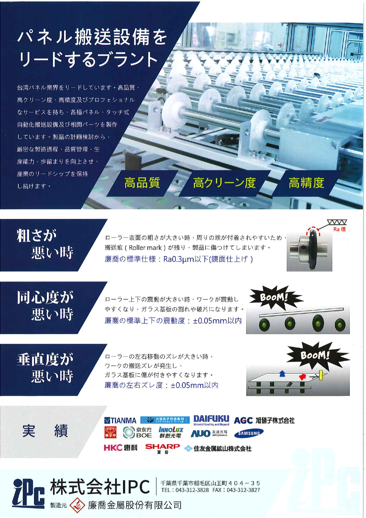 台湾パネル業界をリードしています。高品質、高クリーン度、高精度及びプロフェッショナルなサービスを持ち、各種パネル、タッチ式自動化搬送設備及び相関パーツを製作して...
