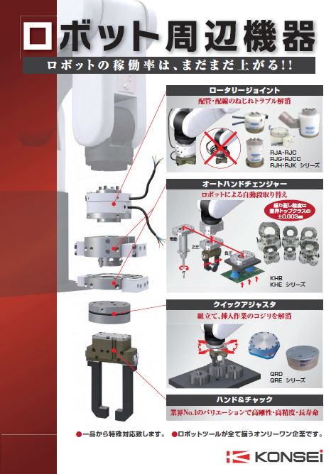 ロボットツールへのエアー配管やスイッチへの電気信号線がよじれたり断線でお困りではありませんか?そんな場合はKONSEIのロータリージョイントで解決!この商品の効...