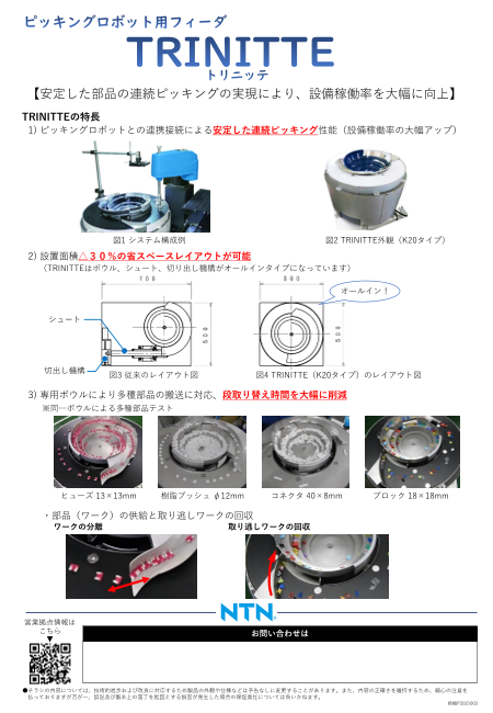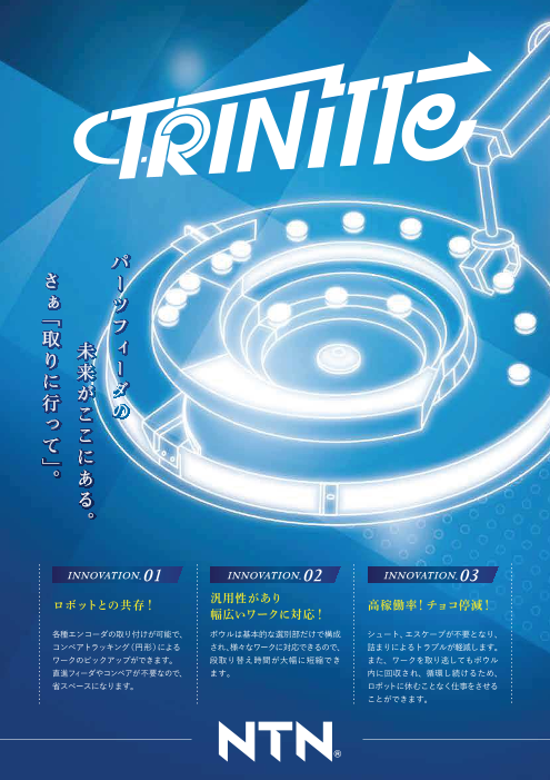 新商品TRINITTE(トリニッテ) 汎用性がありチョコ停も軽減できる、産業用ロボットのベストパートナー関連ワード:TRINITTE,トリニッテ,パーツフィーダ,パーツフィーダー,NTN...