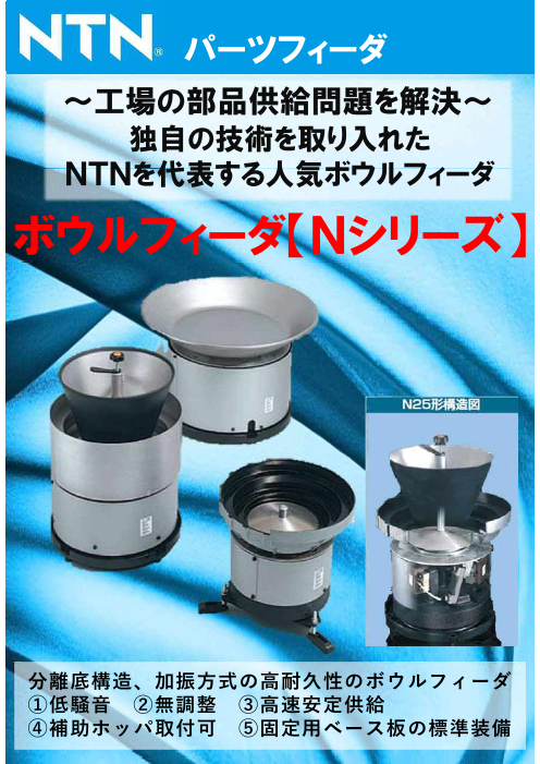 ◆パーツフィーダのはたらきとは◆アプリケーション(ワーク)の紹介◆Nシリーズ仕様、寸法 【特徴】低騒音 無調整 高速安定供給 補助ホッ...