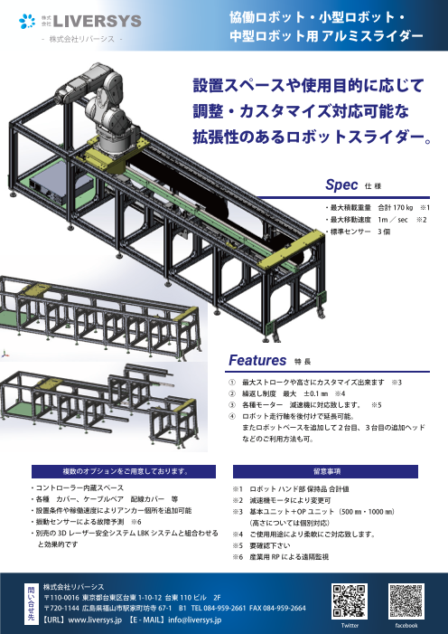 特長① 最大ストロークや高さにカスタマイズ出来ます ※1 ② 繰返し制度 最大 ±0.1 ㎜ ※2③ 各種モーター 減速機に対応致します。 ※3 ④ ロボッ...