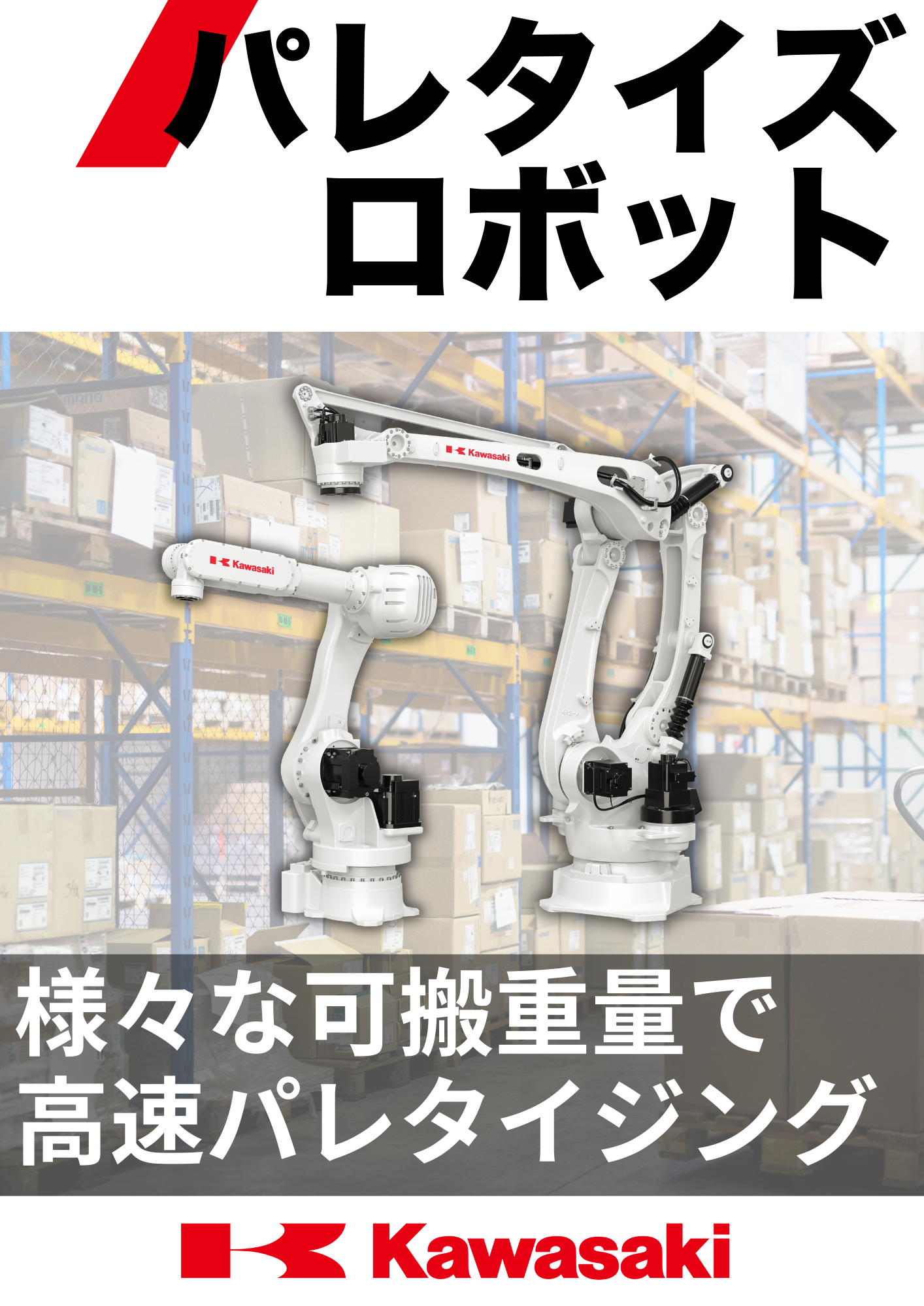 川崎重工の高速パレタイジングロボットは80kgから700kgの可搬質量をカバーし、物流業...