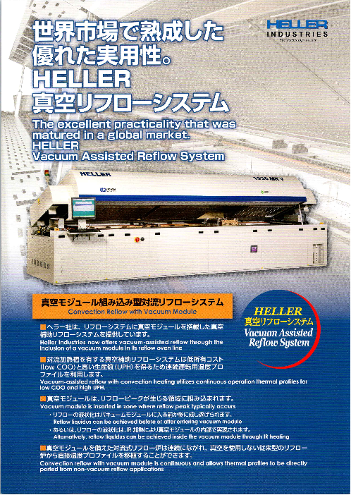 真空モジュール組み込み型対流リフローシステム◆ヘラー社は、リフローシステムに真空モジュールを搭載した真空補助リフローシステムを提供しています。◆対流加熱槽を有する...