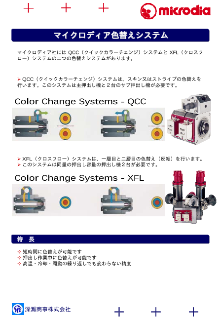 マイクロディア社には QCC(クイックカラーチェンジ)システムと XFL(クロスフロー...