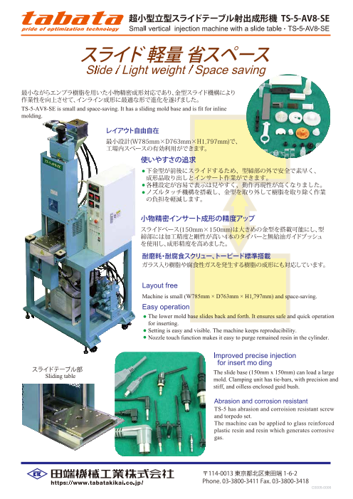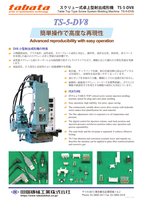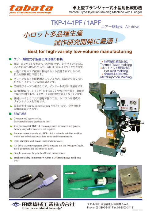 ・TABATAはユーザーの皆様の声を大切に育てる機械づくりを目指しています。・ふっ素樹脂(PTFE)成型装置・小型射出成形機・小型排ガス処理装置・CLEAN SHOT(固着ポリ...
