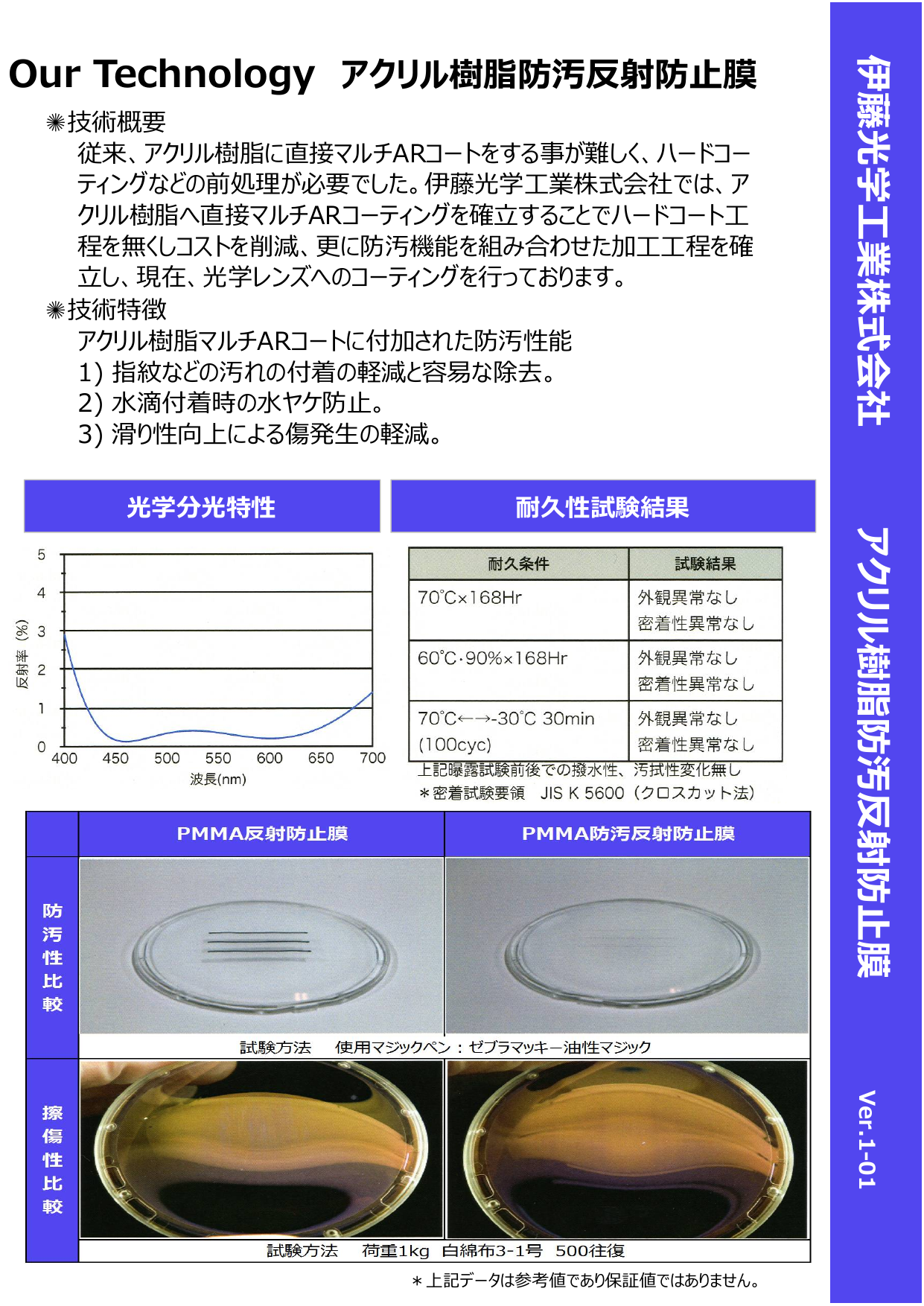 アクリル樹脂へ直接マルチARコーティングを確立することでハードコート工程を無くし...