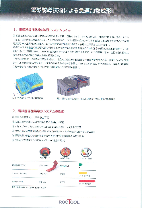 ○加熱経路が柔軟に設計でき熱分布の最適化が可能○加熱スピードは他の加熱方法に比較し2倍以上早く、サイクルが正確○金型の薄い表層を加熱しているため加熱や冷却エネルギー...