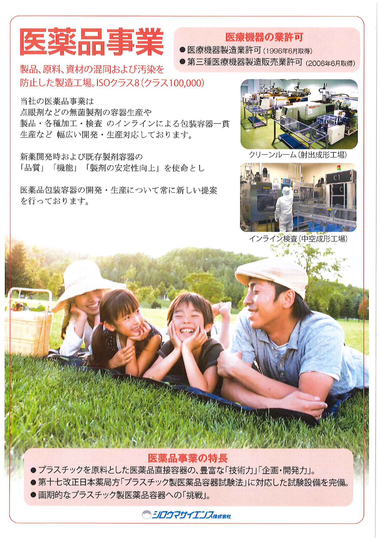 点眼剤などの無菌製剤の容器生産や製品・各種加工・研さのインラインによる包装容器一貫生産など幅広い開発・生産対応しております。◆詳細はカタログをダウンロードしてご覧...