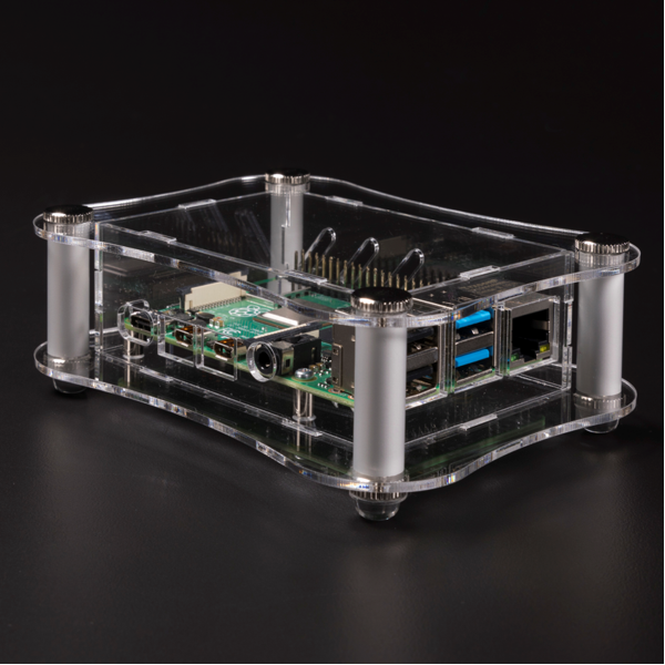 コーナーにアルミ円柱を使用した高級感のあるデザインのアクリル製スケルトンケースです。内部の基板を見せられる一味違ったケースとして、Raspberry Piを楽しむことが出来ま...